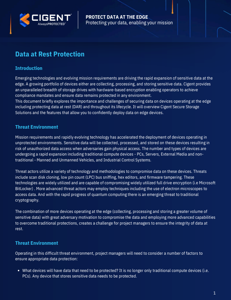 Learn more about how Cigent can help you achieve your mission and protect data at rest and data on the edge from all forms of attack.